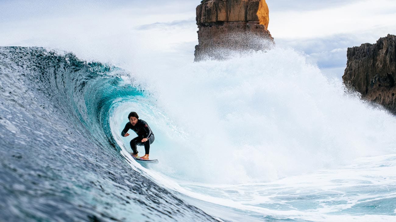 Documenting the adventure was Surfing World editor Vaughan Blakey and filmmaker Nick Pollet. Shot in ultra high-quality resolution, the 25-minute film captures the expansive nature of Australia’s landscape, the comradery between the team, and the sometimes spooky feeling of surfing at the edge of the world. There is one heartstopping moment in the film where Fanning is brushed by something dark and fast in the channel while paddling in.
