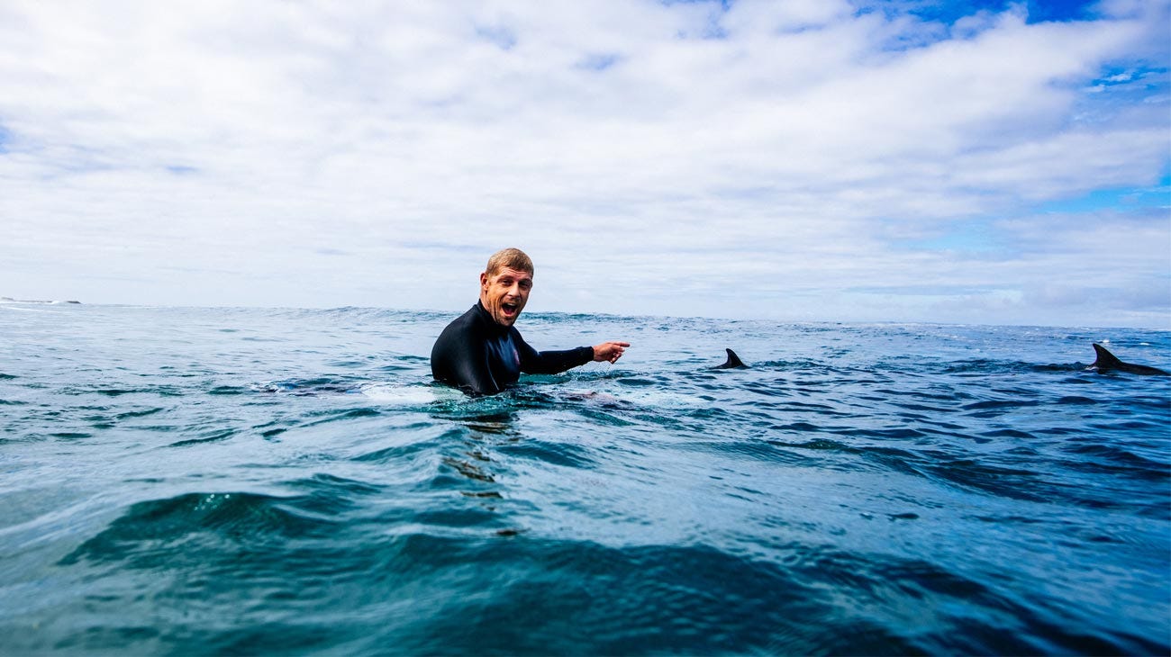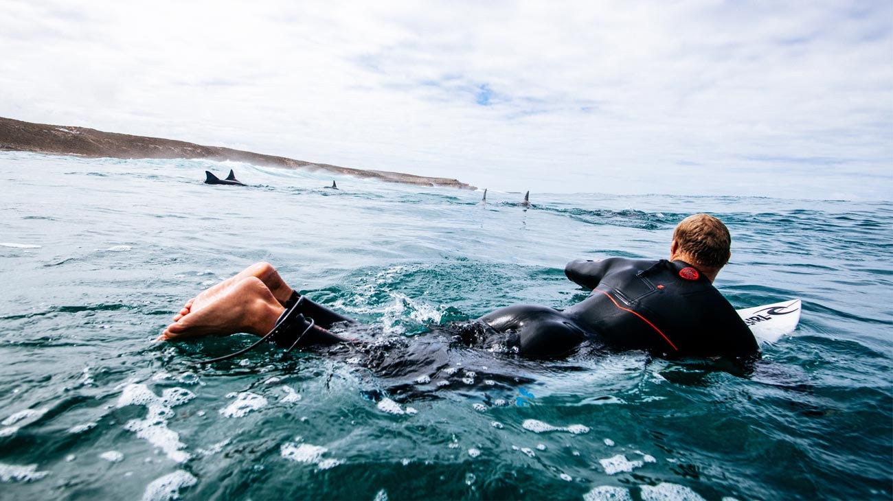 Considering his history with sea life, you can feel the tension yourself, before realising at the same time as him that it was ‘just’ a seal. In more sublime frames, there are pods of dolphins swimming through the line up, plus the iconic appearance of emus and kangaroos. The constant company of marsupials along the trip, is what made Gabriel Medina dub the adventure ‘The Kangs’.