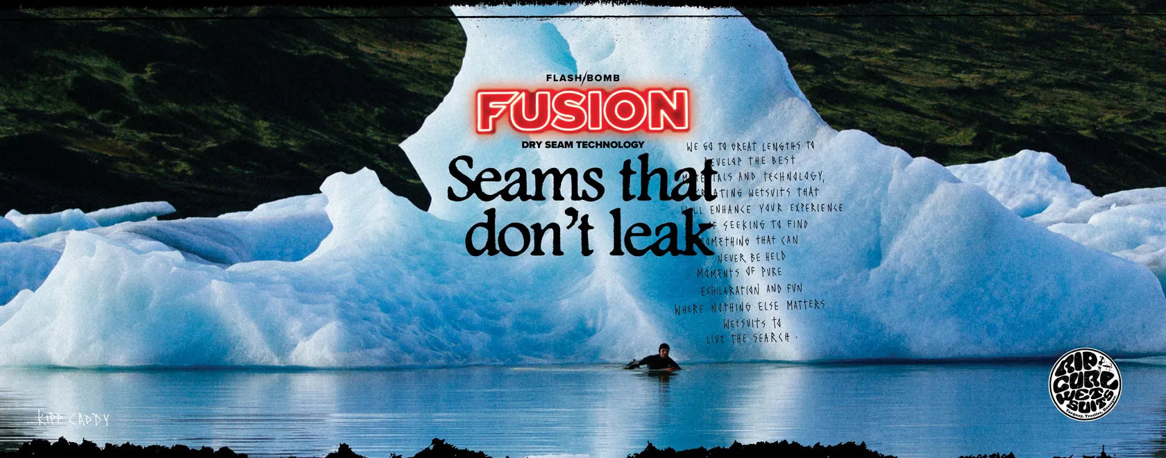 Rip Curl’s Fusion Dry Seam Technology solves the age-old issue of wetsuits leaking at the seams, without resorting to using stiff liquid tape. Because this bonding technique doesn’t require stitching, it also holds the full integrity of the neoprene to avoid water getting in. That means you have a stretchier, warmer suit that shuts out the cold water and insulates your body heat, allowing you to surf for longer. 96% stitch-free, leak-free seams, delivering superior warmth. Another breakthrough innovation by the world leaders in wetsuit technology.