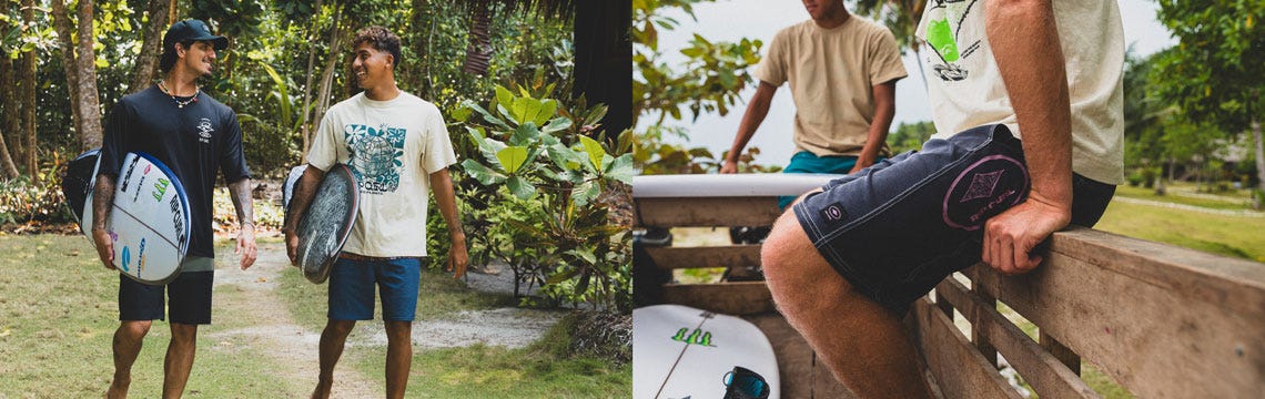 Our truly amphibious short-range, Hybrids are made for water and land. These multipurpose threads are designed with all the style and finesse of our walkshorts combined with some key technical aspects of our surfing trunks. Tailored fits, lengths to your liking: below or above the knee. These shorts can do it all.